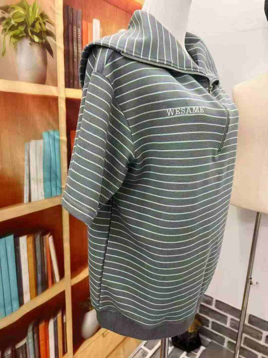 64件灰蓝翻领条纹半拉链针加厚宽松外穿打底polo上衣,独立包装带吊牌,码数S-XL。