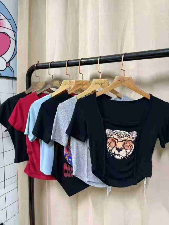 6.8清1062件靓妹辣妹品牌专柜撤柜女装纯棉夏季美式设计感正肩短袖t恤短款上衣潮 高品质实体店闭眼冲 码数S- XL 独立包装带吊牌