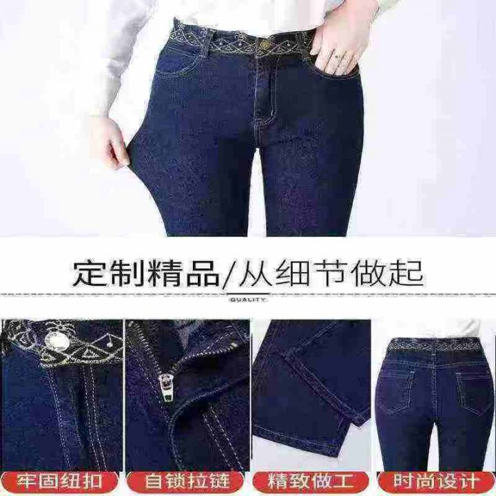 中年妈妈宽松牛仔裤女春秋高腰直筒弹力裤子修身显瘦,...