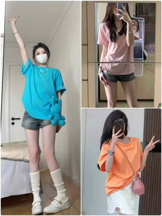 电商仓回收2300件宽松慵懒纯色净版短袖T恤,码数S-2XL。版型宽松,色彩丰富有弹力。都有包装,分货➕0.5