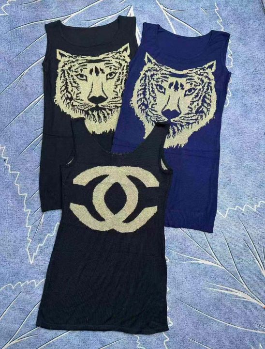 美式复古辣妹朋克摇滚亚文化针织背心上衣,虎头图案265件,香奈儿图案118件,独立包装,清4.8,分➕0.5