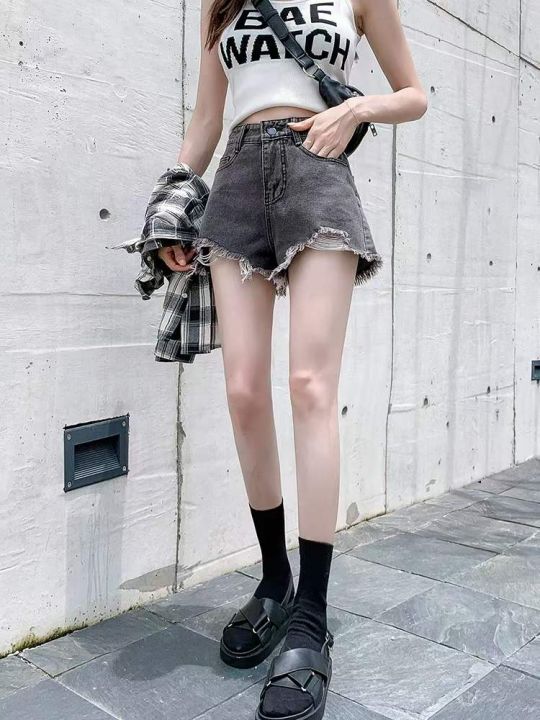 夏季新款洗水棉网红复古毛边设计款牛仔短裤,独立包装...