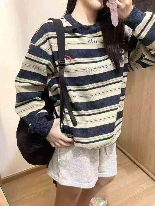 大码潮牌没计感大版型宽松痞帅鱼鳞布印花条纹卫衣,285件,M-2XL,后领包边...