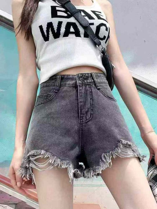 夏季新款洗水棉网红复古毛边设计款牛仔短裤,独立包装...