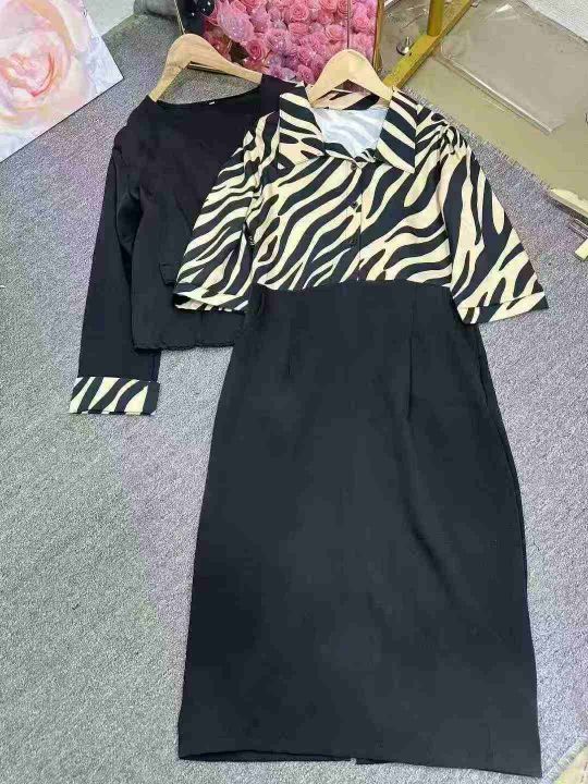 法式复古气质两件套连衣裙女春秋新款妈妈条纹POLO领套装裙,几个整款,图片款,1到7码,独立包装,货品干净,550套左右,9.9清,分货加1