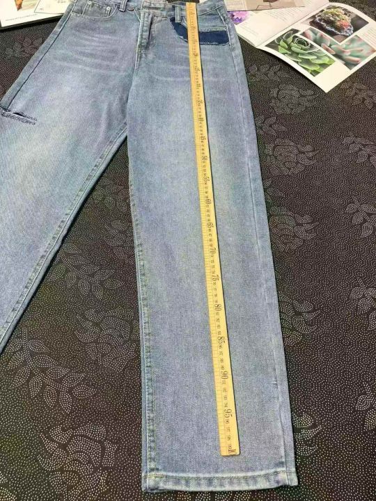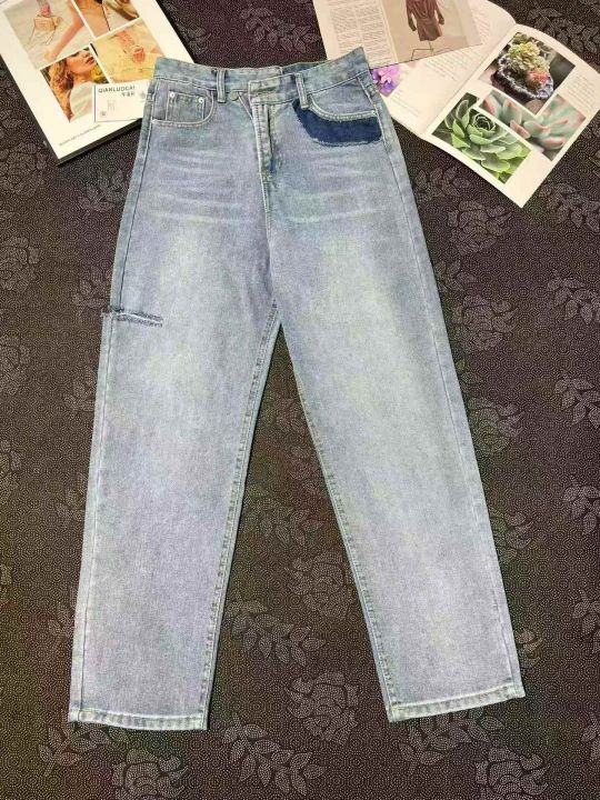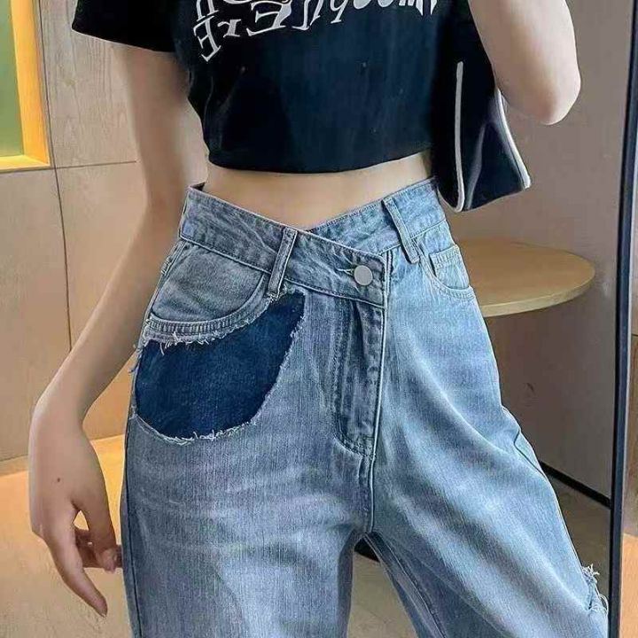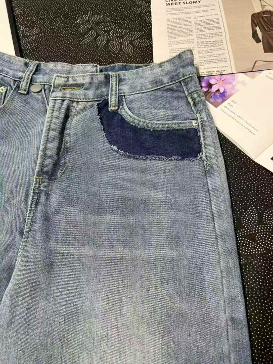 破洞流苏直筒牛仔裤女 32条,全清10.8元,正品独立包装,码数~S. M,设计感宽松直筒牛仔裤女春装高腰显瘦不规则侧边破洞小众哈伦裤潮