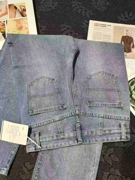 破洞流苏直筒牛仔裤女 32条,全清10.8元,正品独立包装,码数~S. M,设计感宽松直筒牛仔裤女春装高腰显瘦不规则侧边破洞小众哈伦裤潮