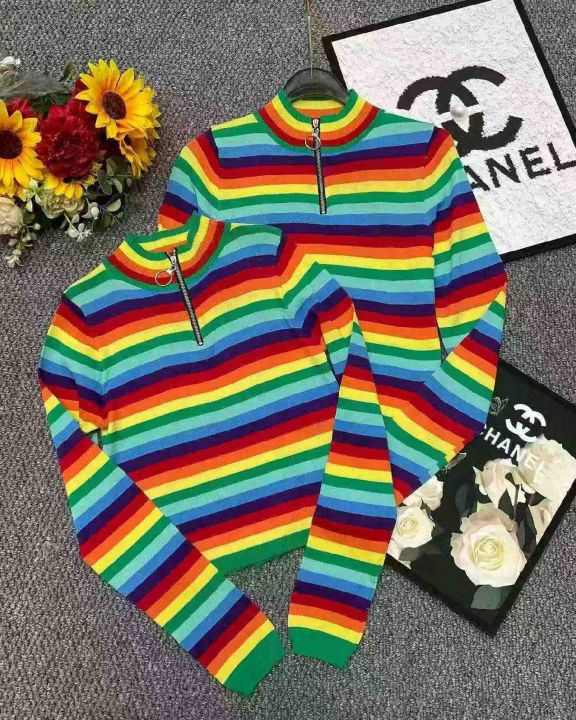 春秋新款高弹舒适半拉链条纹针织套头毛衣,独立包装,...
