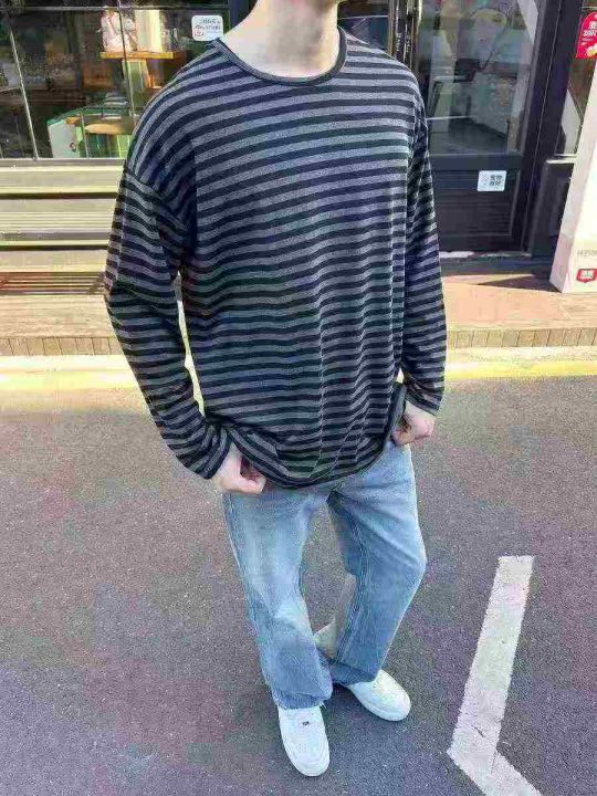 787件男女同款慵懒风春秋冬季打底衫美式条纹长袖t,有...