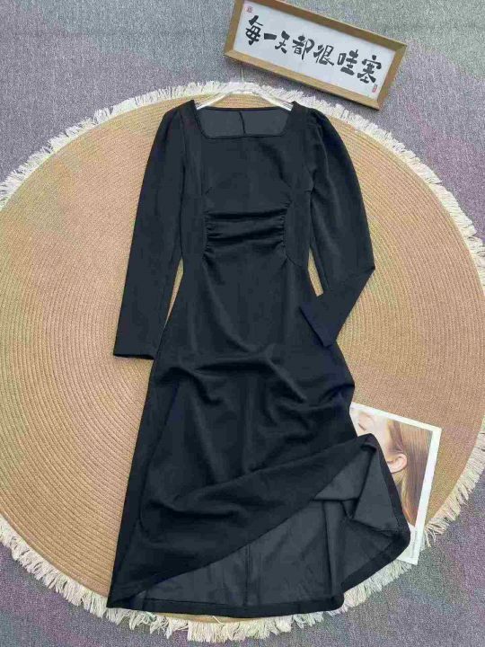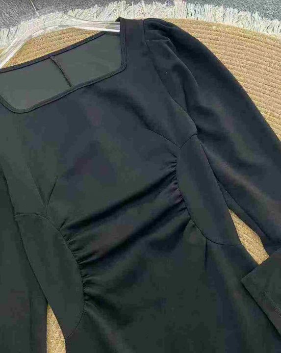 赫本风黑色方领连衣裙63件9.9,面料舒适,褶皱收腰,...