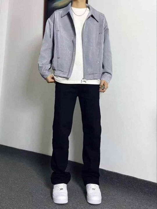 春夏季新款美式高街潮牌男士高弹力黑色宽松百搭显瘦直筒牛仔裤,独立包装带...