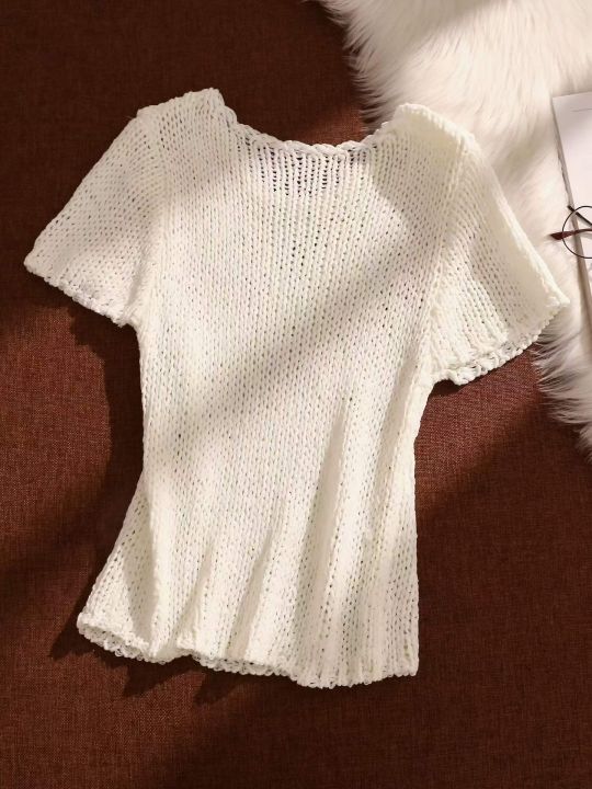 春夏季新款韩系纯欲镂空短款针织衫,独立包装,均码面...