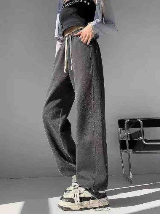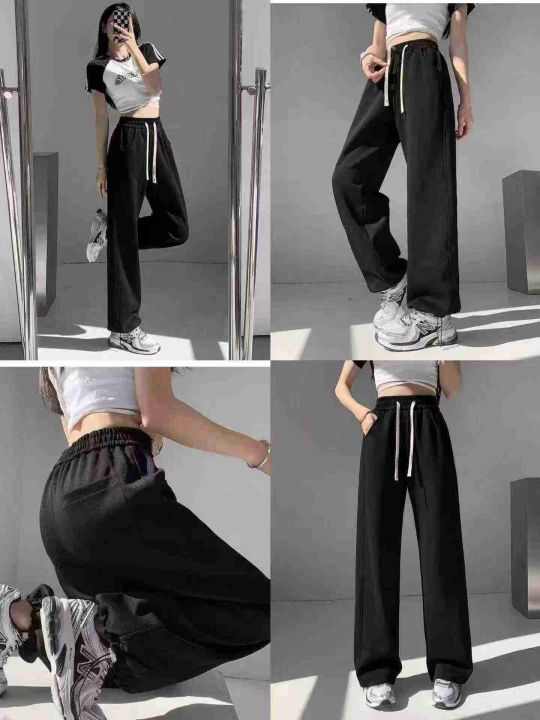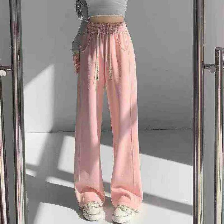 917条美式抽绳长裤子女休闲ins宽松直筒高腰阔腿卫裤,...