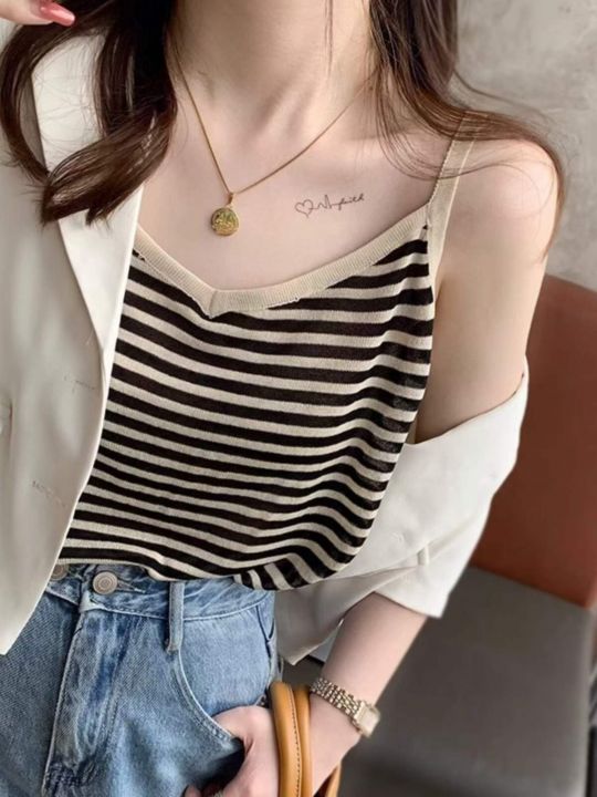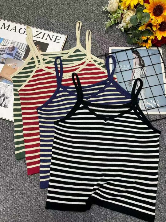 夏季新款撞色条纹韩系宽松百搭针织吊带,独立包装,单...