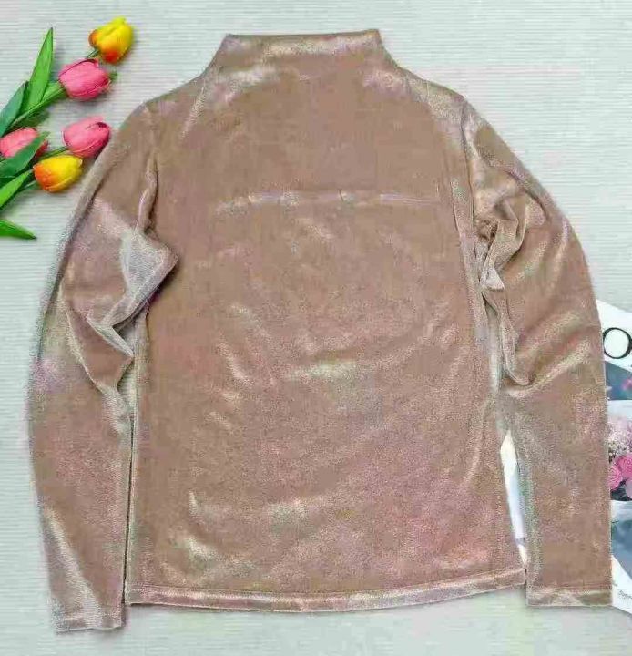 女装春款半高领显瘦洋气百搭丝绒打底衫,260件,1-5码...