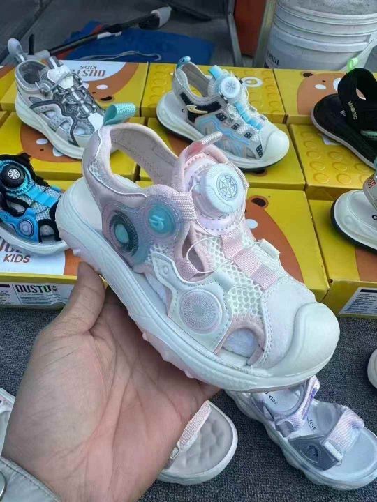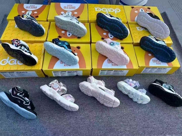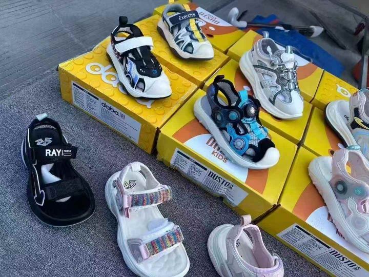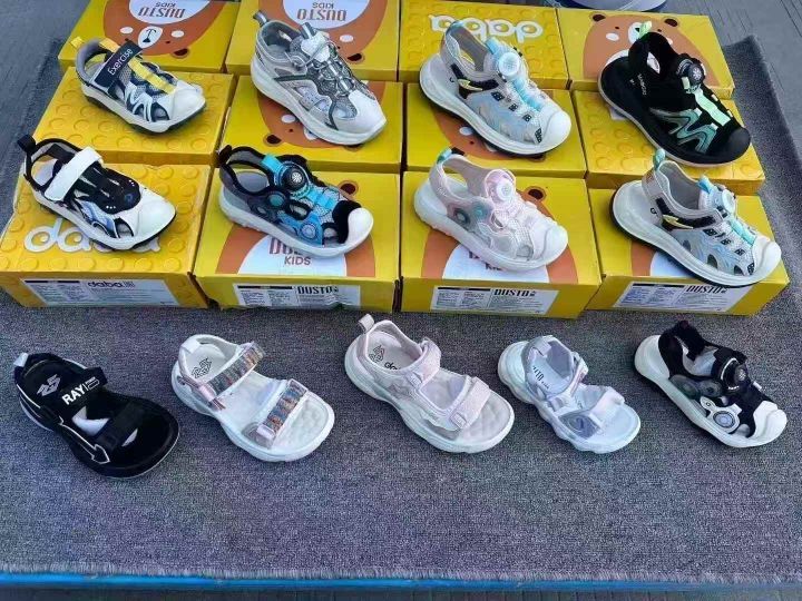 温州品牌童凉鞋,质量非常好,“大東”品牌中大童尺码,25-37 数量2400双左右现货杂款,质量非常好,包头的多,高端货,盒装精品。
