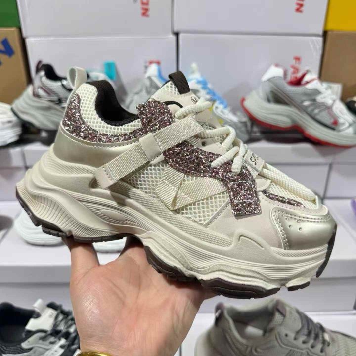 大厂正品尾货,新款网面休闲运动老爹女鞋,穿鞋带,塞...