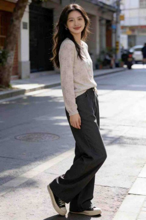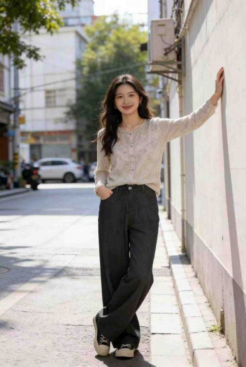 春秋新款复古高腰宽松直筒阔腿牛仔裤,独立包装,码数...