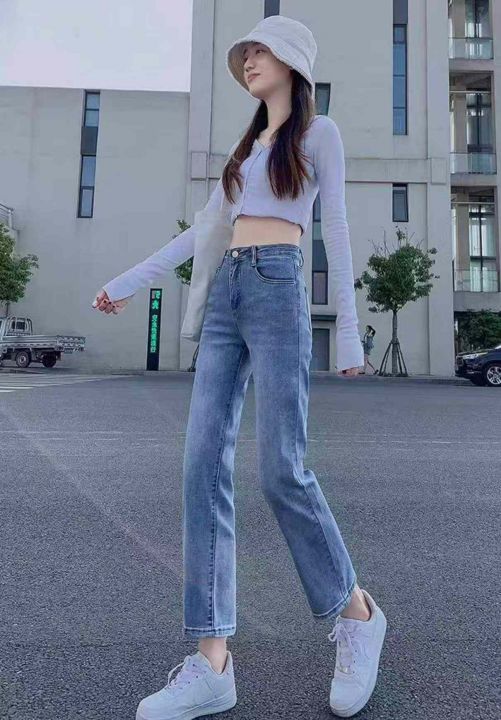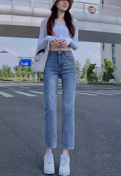 春夏季新款高弹力洗水棉网红复古牛仔烟管裤,独立包装...