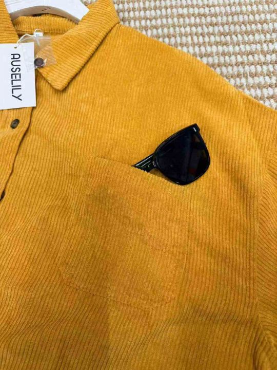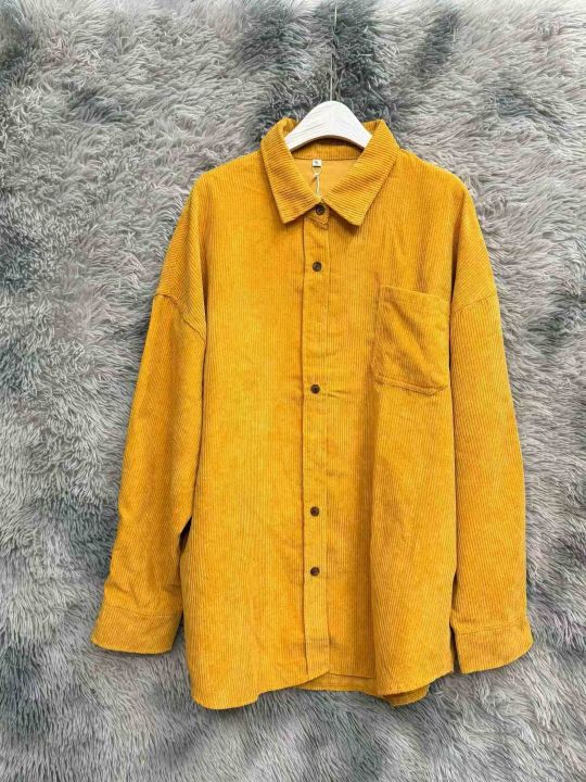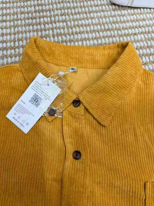 复古灯芯绒纯色长袖外套女春季新款宽松显瘦衬衫百搭舒适男女同款、四个颜色,独立包装带吊牌,码数:S-2XL.数量:112件,胸口口袋气孔进灰,白菜价:3.9