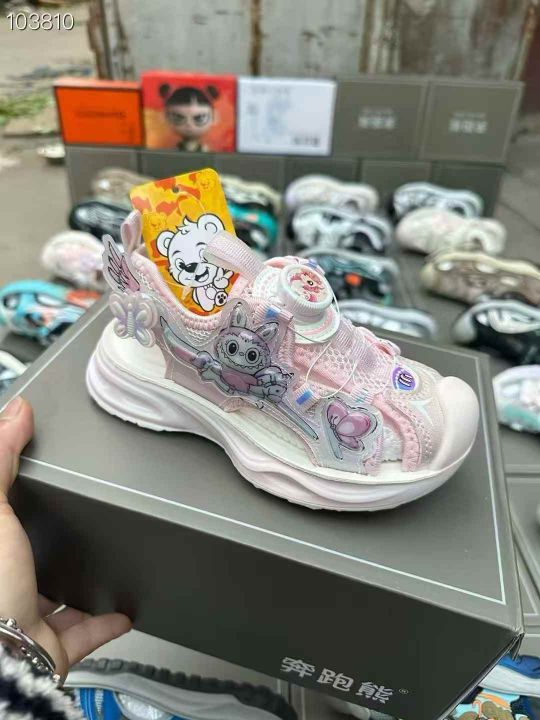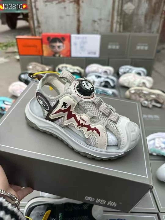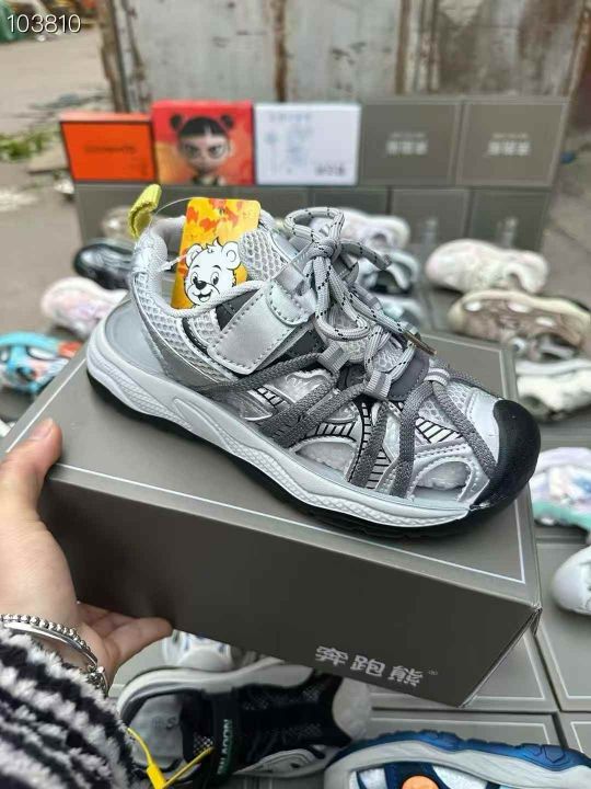 最新火爆款。品牌 奔跑熊。宝贝小黄鸭。包头凉鞋 乳胶垫。 大部分纽扣。码子,27……42码。基本一首配吊牌手提袋脚撑 大厂品质。60双起批 特价 25