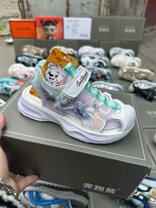 最新火爆款。品牌 奔跑熊。宝贝小黄鸭。包头凉鞋 乳胶...