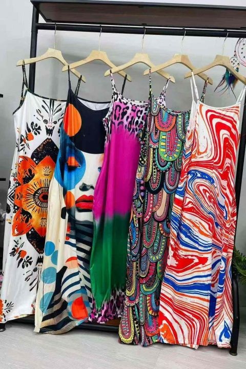 外贸款长款吊带短袖连衣裙,数量:1276条,码数:M-L-...