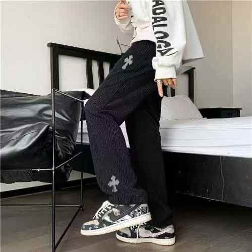 欧美高街vibe风简约刺绣男士灯芯绒阔腿拖地卫裤.单款两个色150条M-2XL独立包装全清8.8