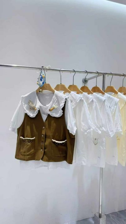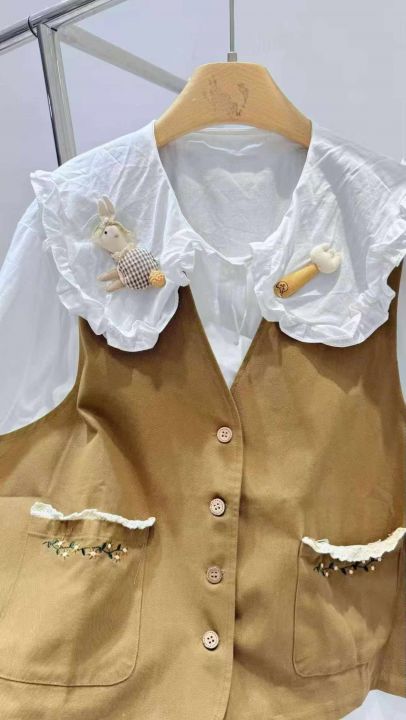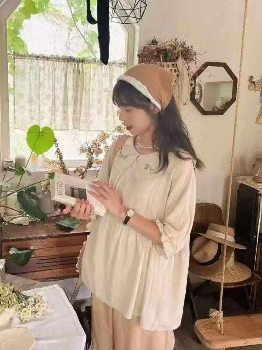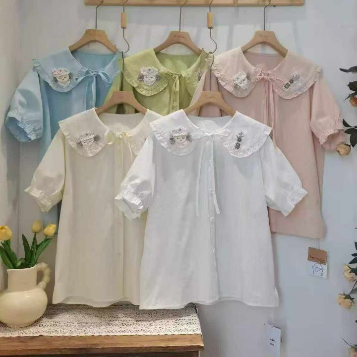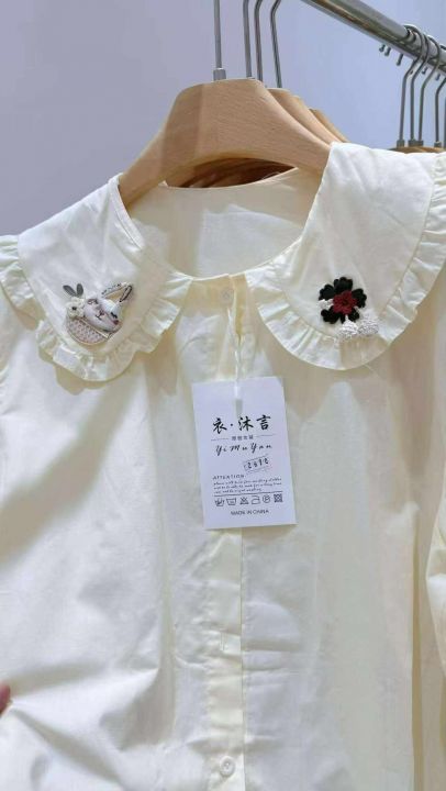 29重工森系娃娃领小衫木耳边大翻领+立体手工布贴,软...