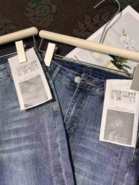 复古女士开衩高弹八分九分牛仔裤 323件,全清11.8元,分货12.8元正品独立包装 货品干净,码数:25、26、27(S到L),复古开叉微喇牛仔裤女春夏2026年新款设计感小众高腰显瘦八分裤子