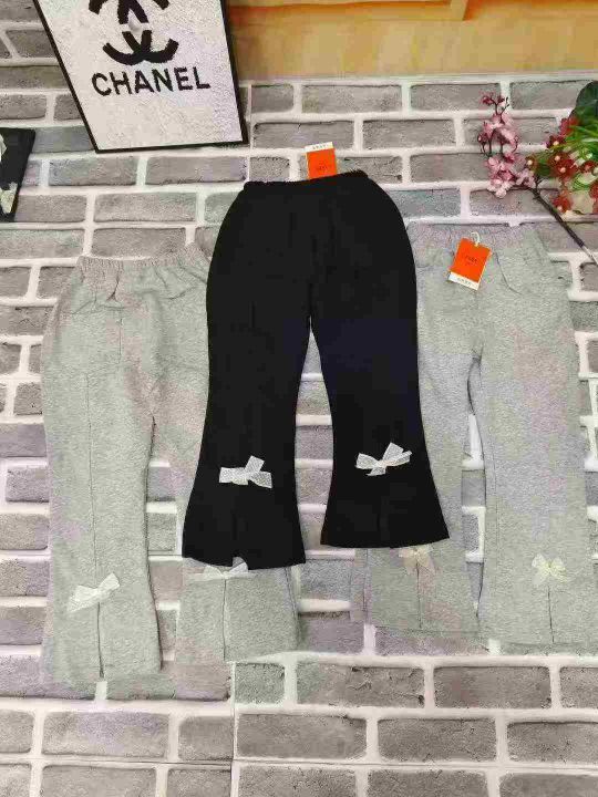 春秋新款女童修身休闲喇叭卫裤 数量150件左右 尺码20-24(相当于130--150) 两个颜色 裤脚开叉 面料厚实柔软 独立包装带吊牌 货品干净整洁