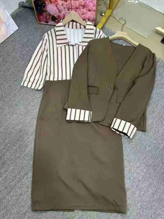 法式复古气质两件套连衣裙女春秋新款妈妈条纹POLO领套装裙,几个整款,图片款,1到7码,独立包装,货品干净,550套左右,9.9清,分货加1