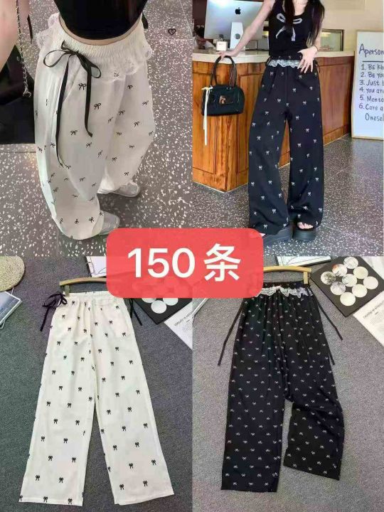 ☕️蕾丝拼接蝴蝶结碎花休闲裤女夏季新款设计感高腰阔腿甜辣拖地长裤180条全清9.8元,码数M到XXL,两款两色,独立包装,裤子有口袋[庆祝][庆祝][庆祝]