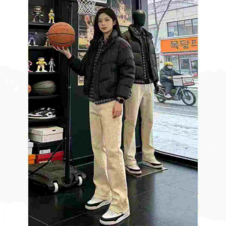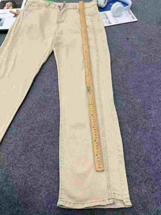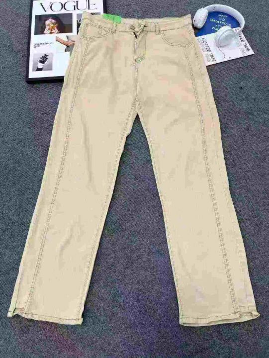男女同款个性染色水洗牛仔裤176条,全清11.8元,正品独立包装,码数S-XXL,杏色色窄版微喇牛仔裤男女春季显瘦显高直筒长裤美式高街修身微喇裤
