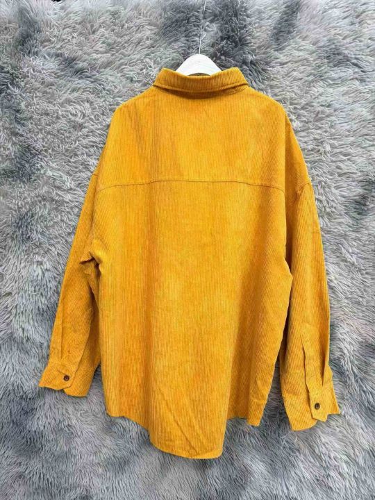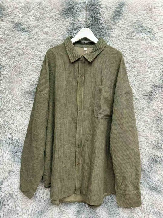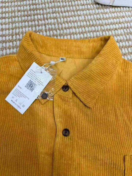 复古灯芯绒纯色长袖外套女春季新款宽松显瘦衬衫百搭舒适男女同款、四个颜色,独立包装带吊牌,码数:S-2XL.数量:112件,胸口口袋气孔进灰,白菜价:3.9