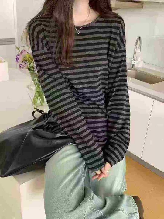 787件男女同款慵懒风春秋冬季打底衫美式条纹长袖t,有...