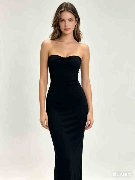 150件左右欧美性感辣妹修身显瘦抹胸连衣裙长裙,高弹...