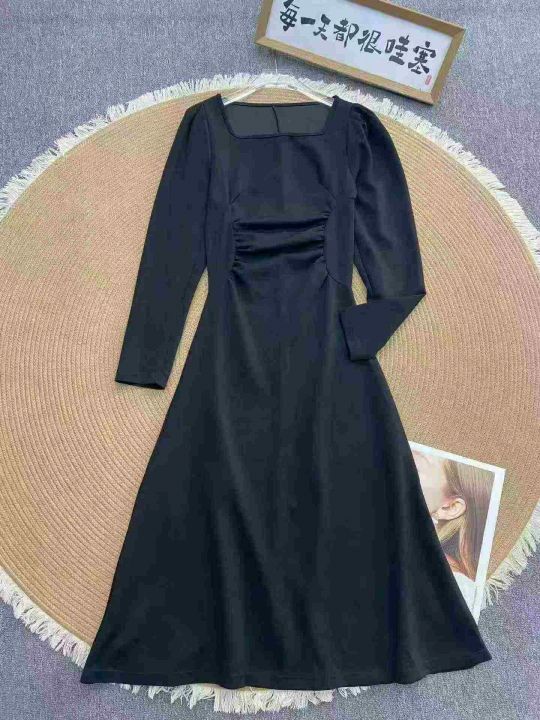 赫本风黑色方领连衣裙63件9.9,面料舒适,褶皱收腰,...