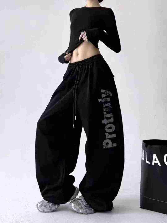 高级感印花字母抽绳设计感休闲速干长裤,[爱心]90件左右,款号#G301,码数M-XL,穿80-130斤,万佳档口货,原包装️无瑕疵,(模特图仅供参考),[666]实体店品质