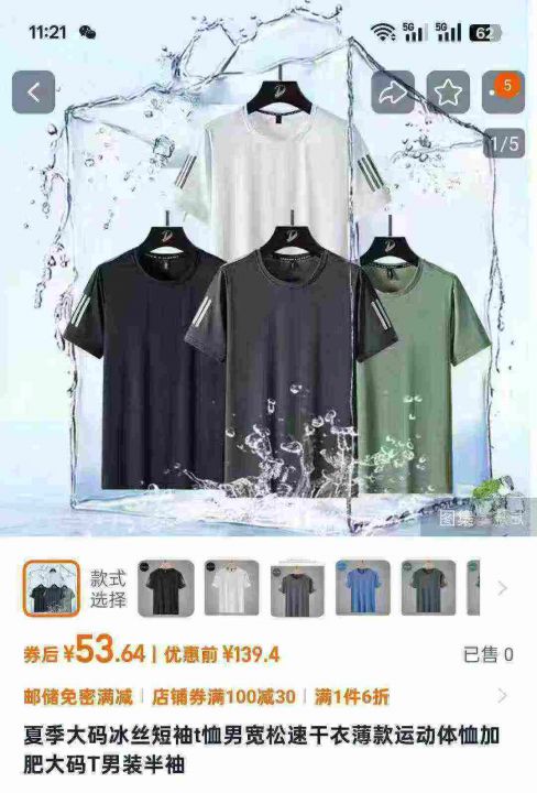 [發]男装冰丝短袖1600独立包装 码数m 到5xl L面料...
