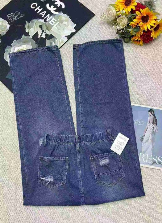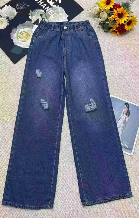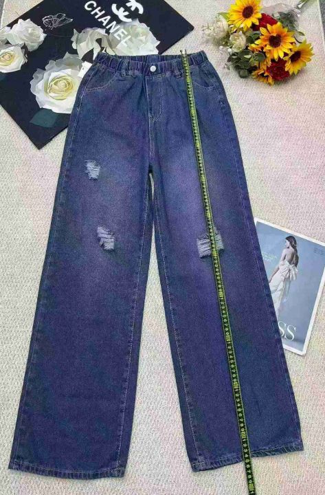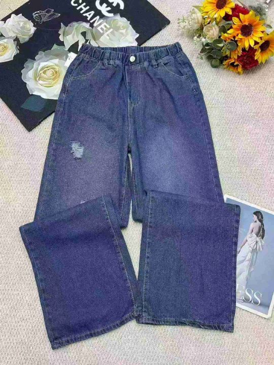 春季新款网红复古松紧腰破洞设计款牛仔直筒阔腿裤,独立包装带吊牌,码数S- 2XL码,340件,全清9.9元超低价秒杀!分货加一!