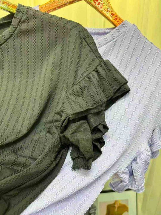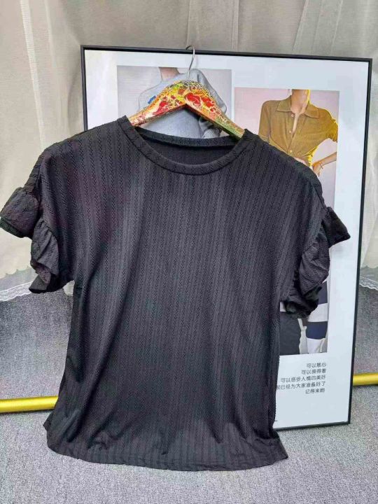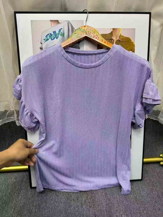 春夏新款纯色圆领荷叶袖短袖T恤上衣,数量26件,码数M-2XL,独立包装,5.8元