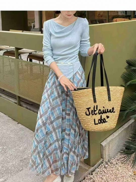 45✨氛围感拉满的气质两件套来啦✨荡领上衣自带柔焦感...
