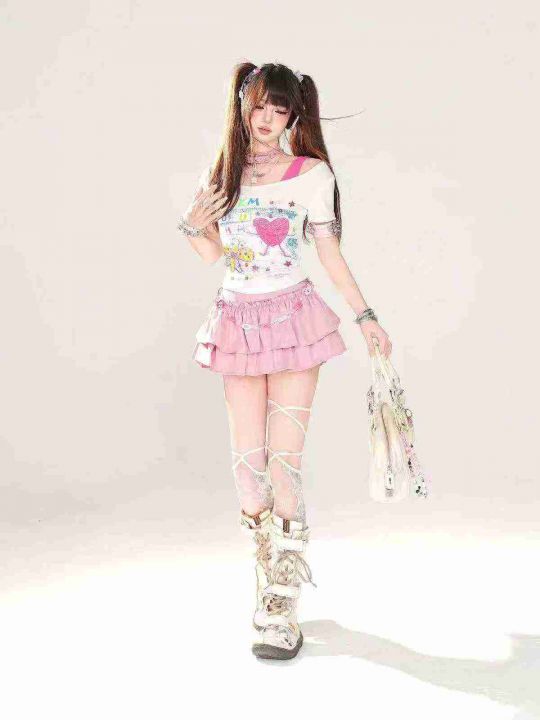 [月亮]:5.5清186件(不分货)[月亮]:甜辣纯欲风镂空设计感辣妹短袖[月亮]...
