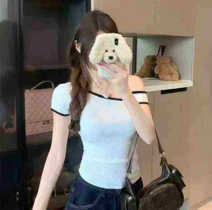 辣妹斜肩针织短袖461件5.9,面料柔软高弹力,品质,撞...