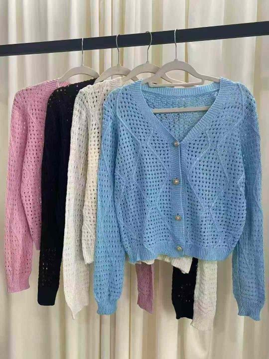 法式气质针织开衫,时尚简约百搭显瘦上衣4色!230件左右均码大弹力,独立包装!全清6.8元