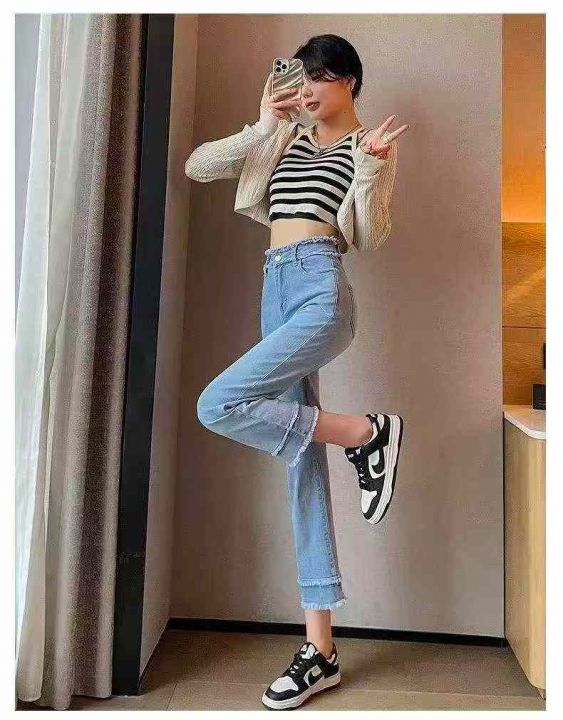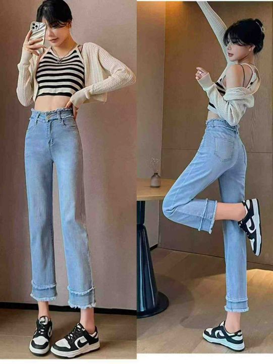 高腰显瘦弹力毛边烟管牛仔裤,单款单色,独立包装,数...