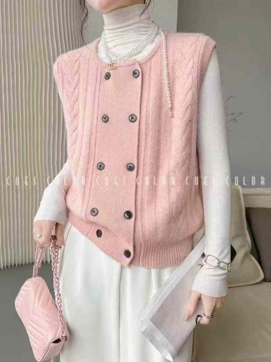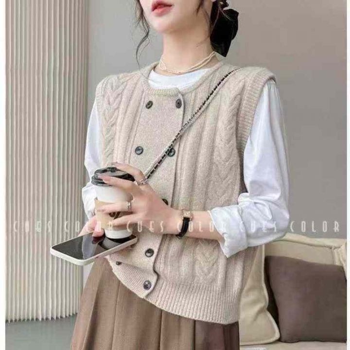 圆领针织开衫马甲背心女宽松外穿上衣麻花毛衣坎肩潮,独立包装,341件,清6.8,分➕0.5