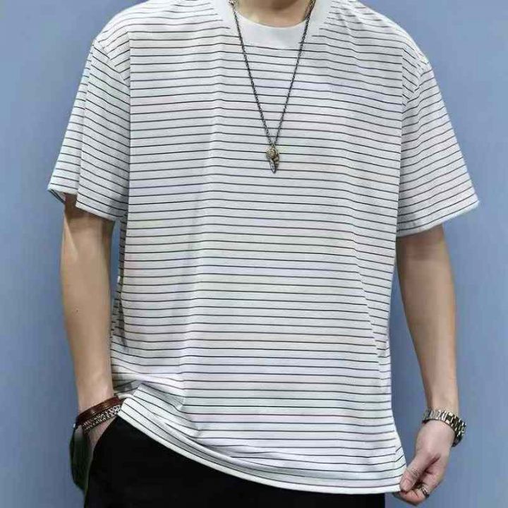 新款条纹夏季宽松休闲短袖男士潮牌T恤半袖港风圆领潮流上衣,码数50-58码,相当于L到-4XL,数量420件,独立包装,货品干净漂亮。