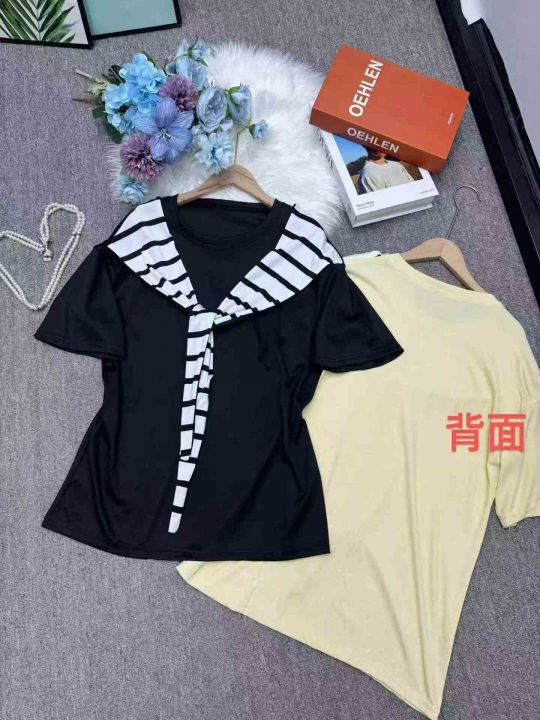 全清价5.9设计感条纹 短恤T恤女夏宽松显瘦通勤风上衣2...